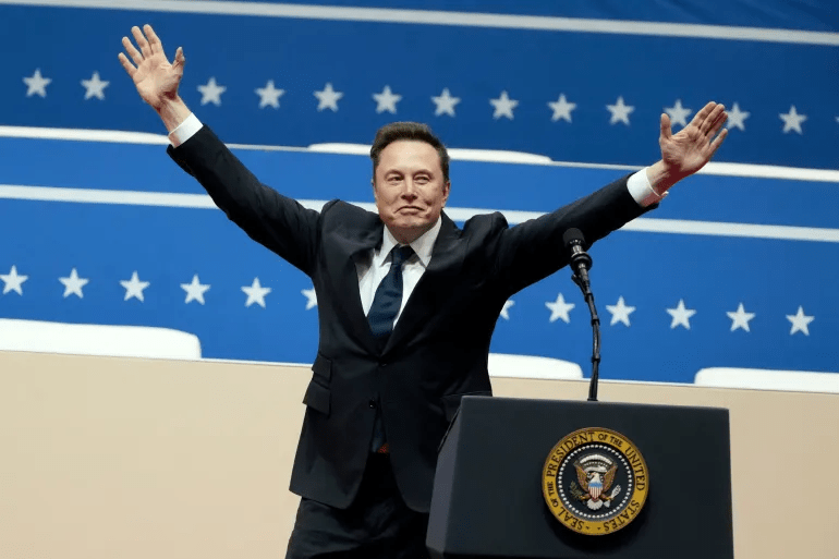 Elon Musk arrives to speak at a rally of President Donald Trump’s supporters after Trump’s inauguration on January 20, 2025, in Washington, DC [Matt Rourke/AP]